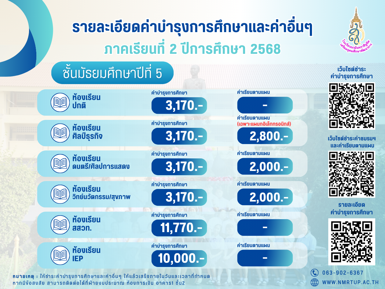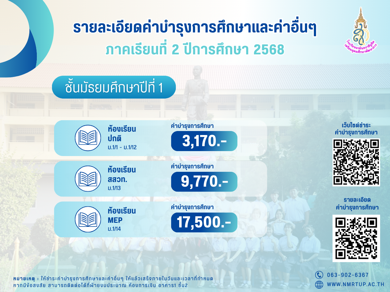 การชำระค่าบำรุงการศึกษาและค่าชมรมผู้ปกครองและครู ภาคเรียนที่ 2 ปีการศึกษา 2568